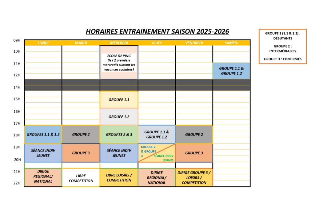 Horaires Le club du PJVTT propose aux adhérents tout au long de la saison des séances d’entraînement. Lors des périodes de vacances scolaires des stages sont planifiés. Facebook-f Instagram mentions légales Charte FFTT